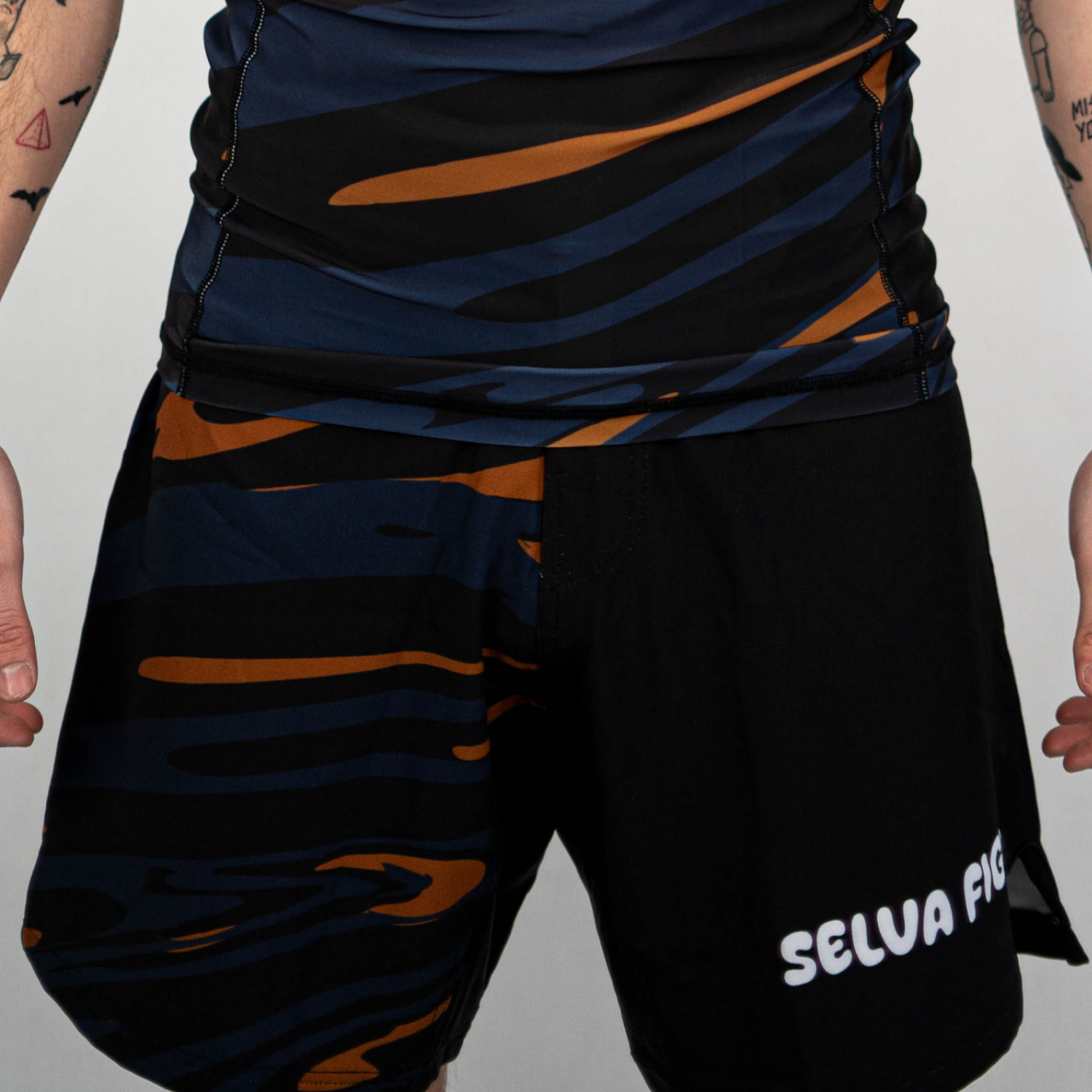Klasyczna czerń z eleganckimi brązowymi akcentami podkreśla poziom zaawansowania i zaangażowanie w sztukę jiu-jitsu. Lekki, ale niezwykle wytrzymały materiał odporny na rozciąganie i przetarcia gwarantuje długą żywotność. Spodenki posiadają elastyczny pas z mocnym zapięciem na rzep oraz boczne rozcięcia, które zwiększają mobilność i pozwalają na wykonywanie dynamicznych technik bez ograniczeń.